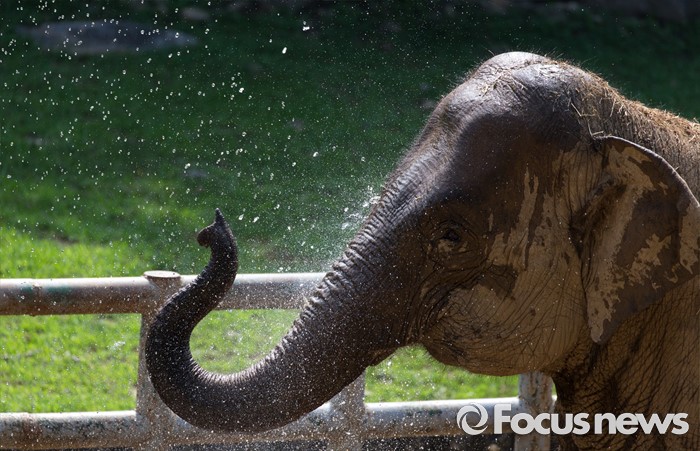 (과천=포커스뉴스) 28일 오후 경기도 과천 서울동물원에서 아시아 코끼리가 물줄기를 맞으며 더위를 식히고 있다.