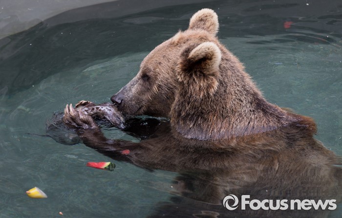 (과천=포커스뉴스) 28일 오후 경기도 과천 서울동물원에서 불곰이 얼음과일을 먹고 있다.