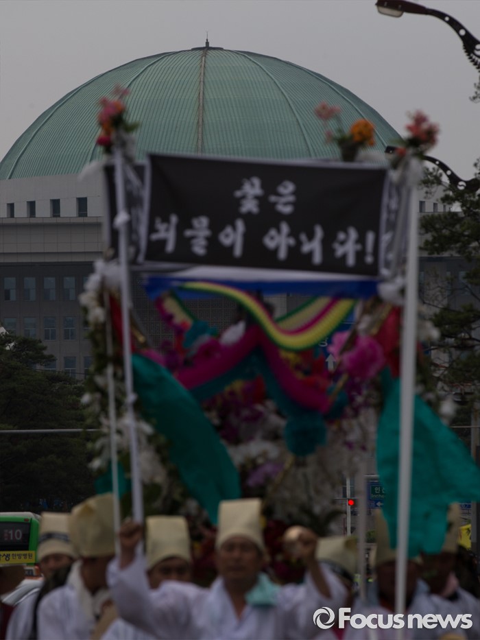 다만 '의원총회를 열어 당론으로 채택할 가능성이 있느냐'는 질문에는 "원칙적으로 당론으로는 하지 않는다"고 선을 그었다.29일 오후 서울 영등포구 국회의사당 인근에서 전국화훼협회 등 27개 단체원들이 김영란법 반대를 외치며 꽃상여를 메고 행진하고 있다. 2016.06.29 이승배 기자