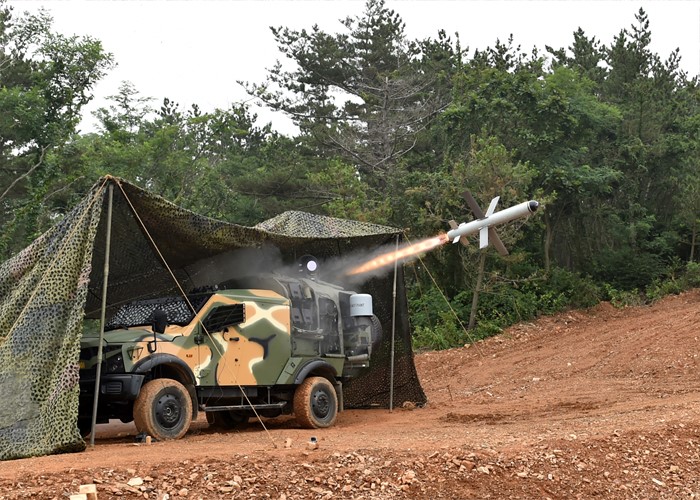 (서울=포커스뉴스) 28일 인천 백령도에서 실시된 서북도서방위사령부 해상사격에 참가한 해병대 6여단이 스파이크 미사일을 발사하고 있다. <사진제공=해병대사령부>
