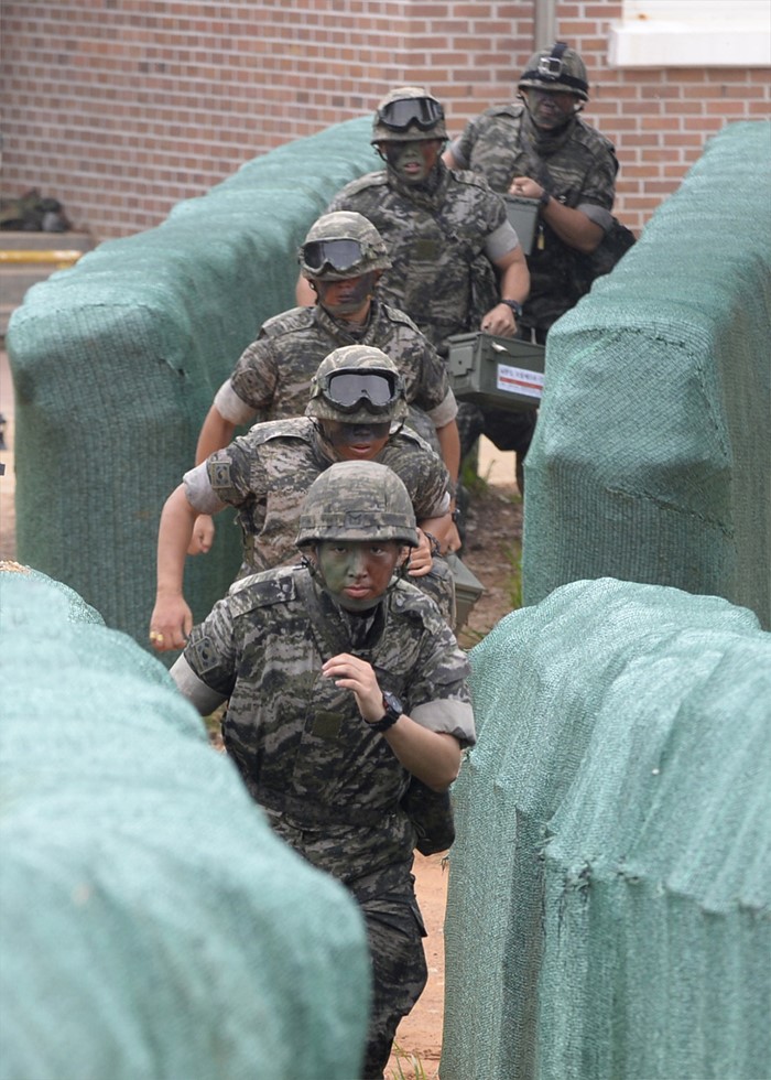 (서울=포커스뉴스) 28일 인천 백령도에서 실시된 서북도서방위사령부 해상사격에 참가한 해병대 6여단 K-9 자주포 운용 장병들이 적 도발 상황에 따라 포상으로 이동하고 있다. <사진제공=해병대사령부>