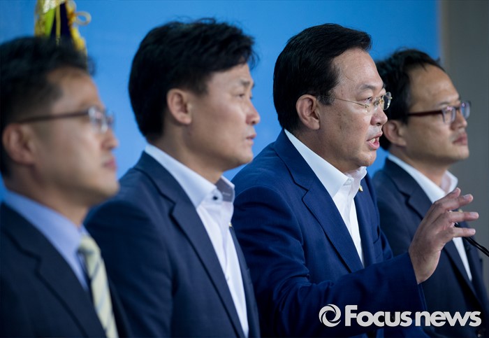 (서울=포커스뉴스) 국회 안전행정위원회 소속 더불어민주당 의원들이 29일 오전 서울 여의도 국회 정론관에서 박근혜 정부와 경찰의 백남기 농민 사건 진상 규명 촉구 기자회견을 하고 있다. 왼쪽부터 김정우, 김영진 의원, 박남춘 간사, 박주민 의원.