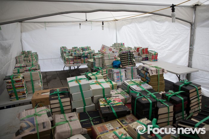 (서울=포커스뉴스) 29일 오전 서울 여의도 한강공원 마포대교 밑에서 2016 한강몽땅 '지상 최대 헌책방 축제'가 열리고 있다. 아직 개봉 되지 않은 책들이 행사장 앞에 쌓여져 있다.