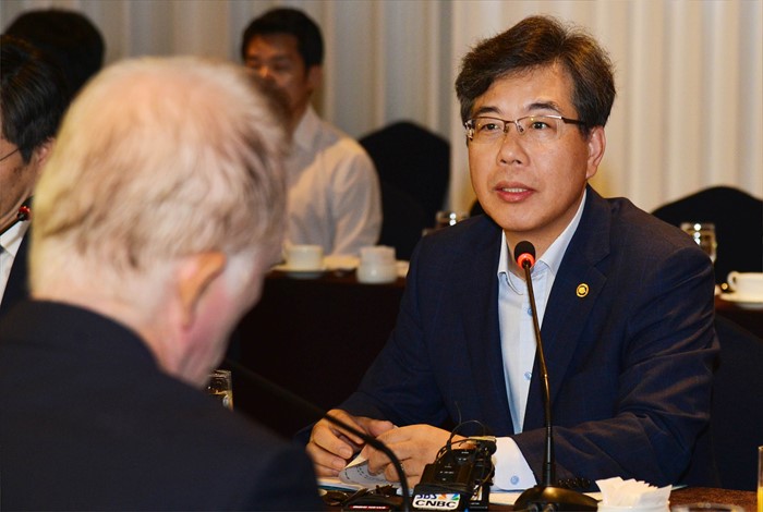 (서울=포커스뉴스) 송언석 기획재정부 차관이 29일 서울 서초구 팔래스호텔에서 열린 7대 사회보험 재정건전화정책협의회에 참석해 모두 발언을 하고 있다. <사진제공=기획재정부>