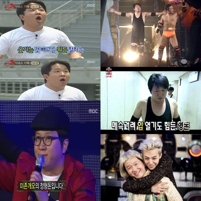 하지만 링 위에선 정형돈에게 아픈 모습은 찾아볼 수 없었다. 정형돈의 트레이드 마크인 족발당수(날라차기 기술)를 2단 로프 위에서 선보였다. 고통 속에서 정형돈의 투혼은 싸이의 곡 ‘연예인’과 함께 감정을 배가시켰다. ‘그대의 연예인이 되어, 항상 즐겁게 해줄게요’라는 가사는 정형돈의 땀과 함께 뭉클함을 더했다.
