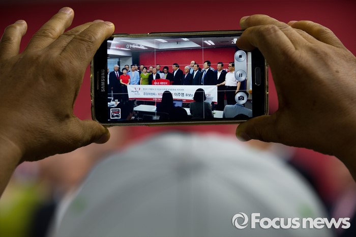 (서울=포커스뉴스) 새누리당 중앙위원회 관계자들이 29일 오후 서울 여의도 새누리당사 브리핑실에서 전당대회 당대표에 출마한 이주영 의원을 공개 지지 선언 하고 있다.
