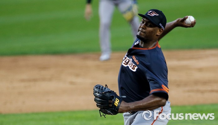 (서울=포커스뉴스) 26일 서울 잠실구장에서 열린 2016 프로야구 한화-두산 경기에서 1회말 한화 선발투수 카스티요가 투구하고 있다.