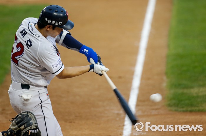 (서울=포커스뉴스) 26일 서울 잠실구장에서 열린 2016 프로야구 한화-두산 경기에서 2회말 두산 김재호가 안타로 1타점을 올리고 있다.