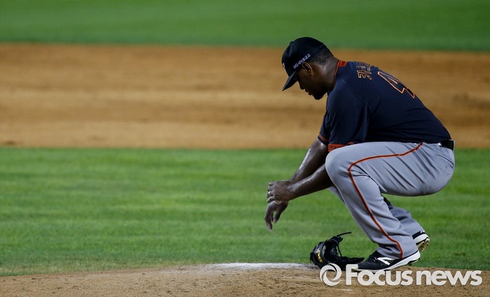 (서울=포커스뉴스) 26일 서울 잠실구장에서 열린 2016 프로야구 한화-두산 경기 5회말 한화 선발투수 카스타요가 마운드 위에 앉아 있다.