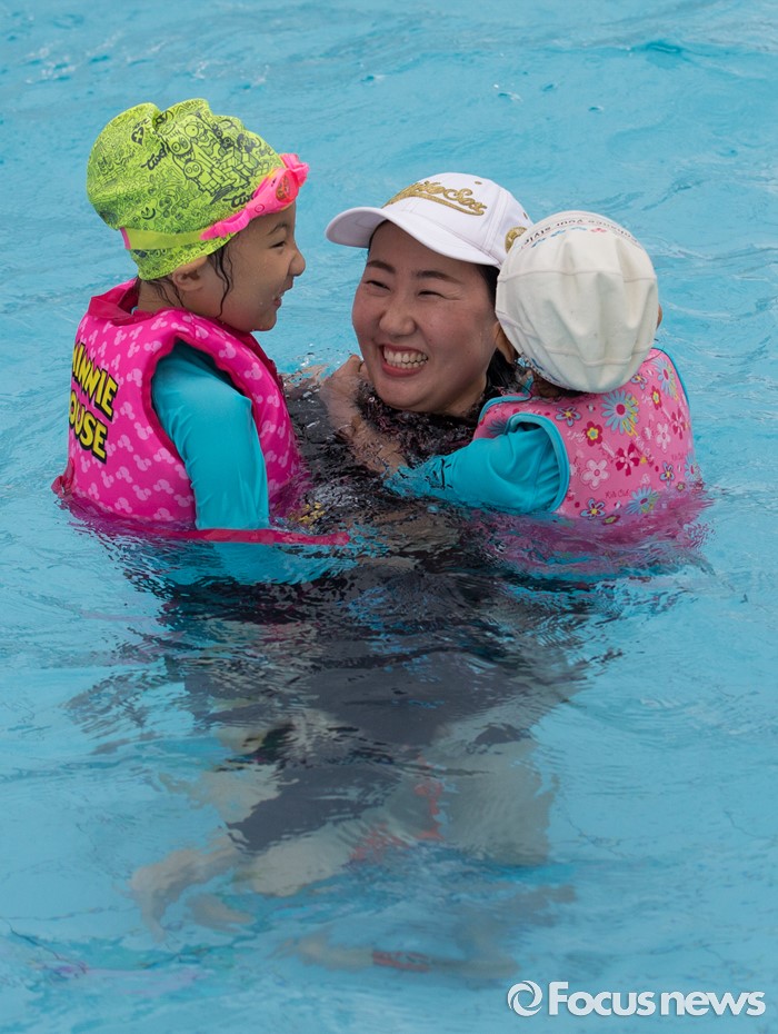(서울=포커스뉴스) 30일 오전 서울 마포구 망원한강공원 수영장을 찾은 시민들이 물놀이를 즐기고 있다.
