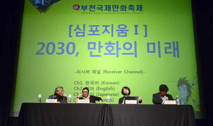 경기도 부천시 원미구에 위치한 한국만화박물관에서 29일 열린 국제만화심포지움 '세션Ⅰ: 2030 만화의 미래'에서는 한국, 일본, 미국, 프랑스의 만화연구자들이 각자의 시각으로 바라본 2030년의 만화 생산, 유통, 소비를 예측해보는 시간을 가졌다.