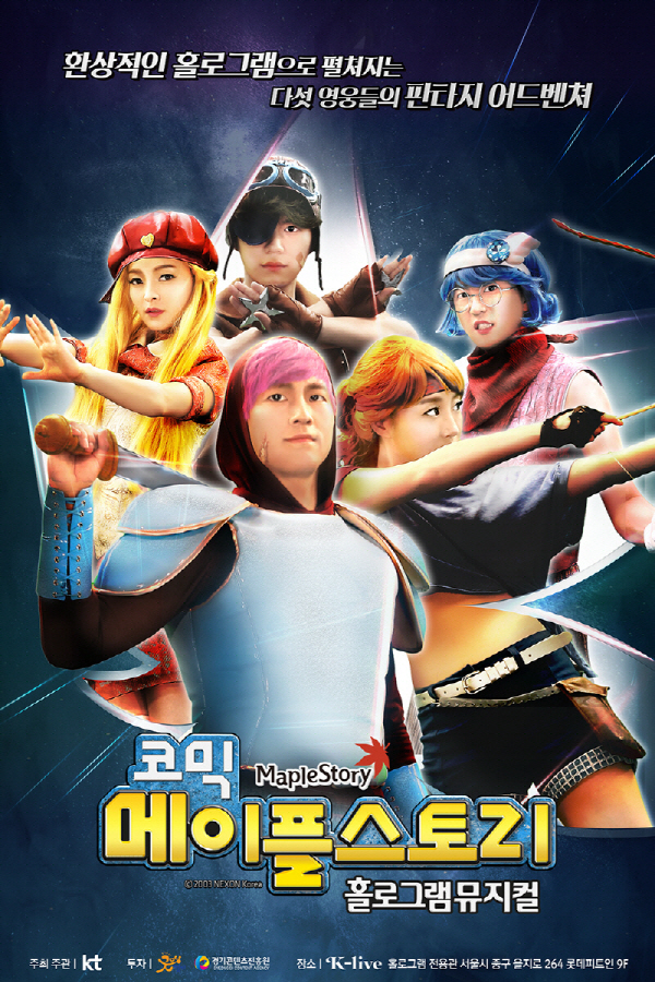 KT와 (재)경기콘텐츠진흥원의 공동 지원사업으로 제작된 '코믹 메이플스토리 홀로그램뮤지컬'은 메이플스토리의 IP를 기반으로 한 베스트셀러 코믹북 코믹 메이플스토리 1~14권의 스토리로 재구성됐다. 다섯 주인공들의 운명적 만남과 위기 속에서 피어난 영웅들의 용기와 우정, 사랑의 성장 스토리를 그리며, 신나는 노래와 춤 그리고 화려한 특수효과가 어우러진다.