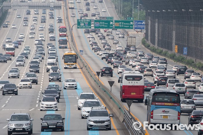 (성남=포커스뉴스) 본격적인 휴가철을 맞은 31일 오후 경기 성남 분당구 궁내동 서울톨게이트에 차량들이 오가고 있다.