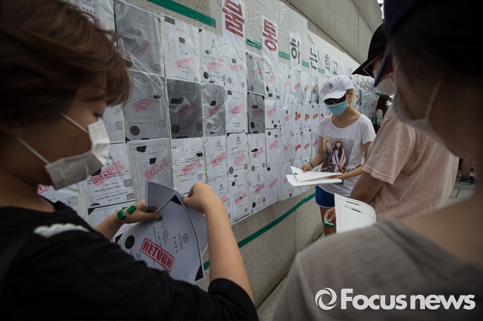 (서울=포커스뉴스) 미래라이프 대학 설립에 반대하는 이화여대 졸업생들 및 재학생들이 2일 오후 서울 서대문구 이화여자대학교 정문 앞에서 졸업장 반납 시위를 하고 있다.