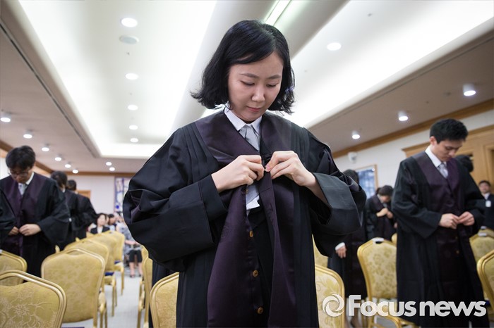 (서울=포커스뉴스) 1일 오전 서울 서초동 대법원에서 열린 신임 법관 임명식에서 신임 법관들이 법복을 입고 있다.