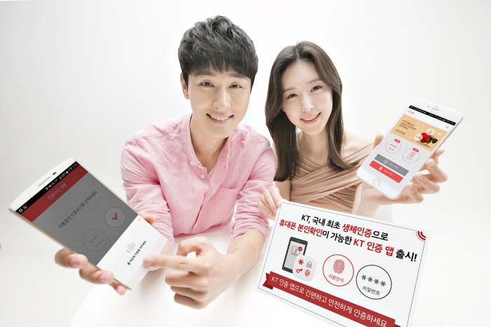 (서울=포커스뉴스) KT는 휴대폰 본인확인과 휴대폰 결제 시 생체인증 할 수 있는 ‘KT 인증’ 애플리케이션(앱)을 2일 출시했다.
