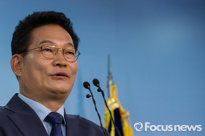 (서울=포커스뉴스) 더불어민주당 전당대회 당대표에 출마한 송영길 더불어민주당 의원이 4일 오전 서울 여의도 국회에서 공약발표 기자회견을 하고 있다.