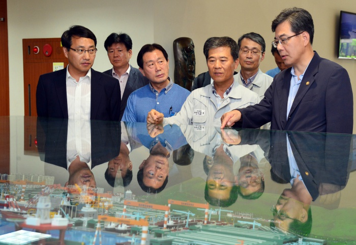 (거제=포커스뉴스) 송언석 기획재정부 2차관이 1일 경남 거제시 소재 삼성중공업 조선소를 방문해 사업장 시찰을 하고 있다. <사진제공=기획재정부>