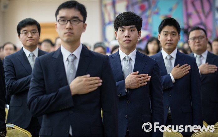 △ 국기에 대한 경례하는 신임 법관들