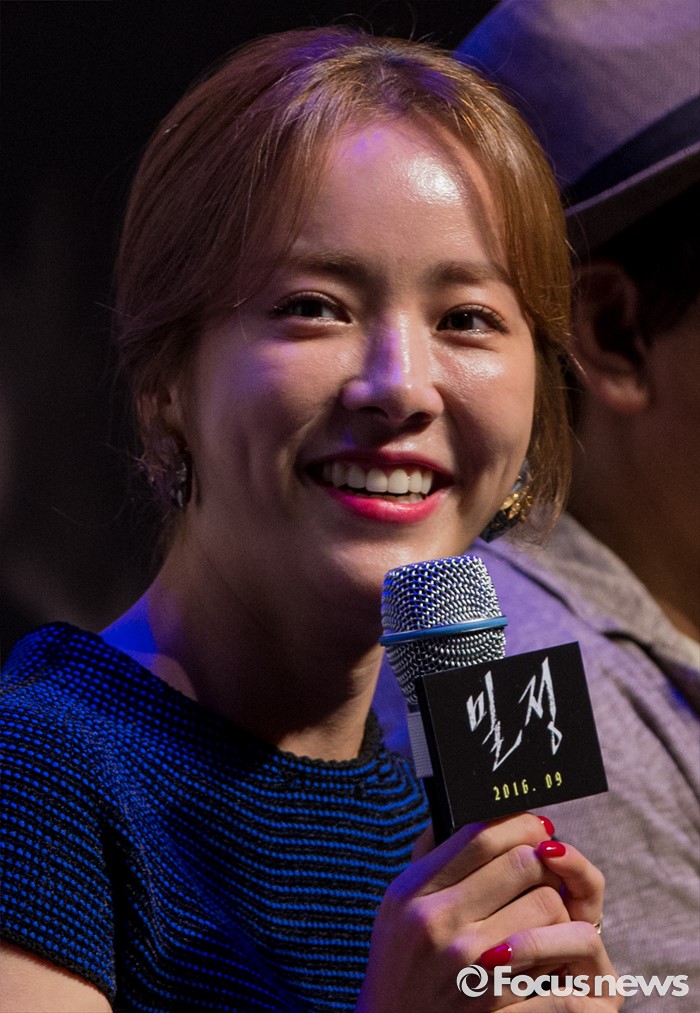 (서울=포커스뉴스) 배우 한지민이 4일 오전 서울 강남구 압구정 CGV에서 열린 영화 '밀정' 제작보고회에 참석해 사회자의 질문에 답하고 있다. 배우 송강호, 공유, 한지민, 엄태구, 신성록 등이 출연하는 영화 '밀정'은 일제 강점기 무장독립단체 의열단과 일본 경찰 간의 암투를 그린 작품으로 오는 9월 개봉 예정이다.