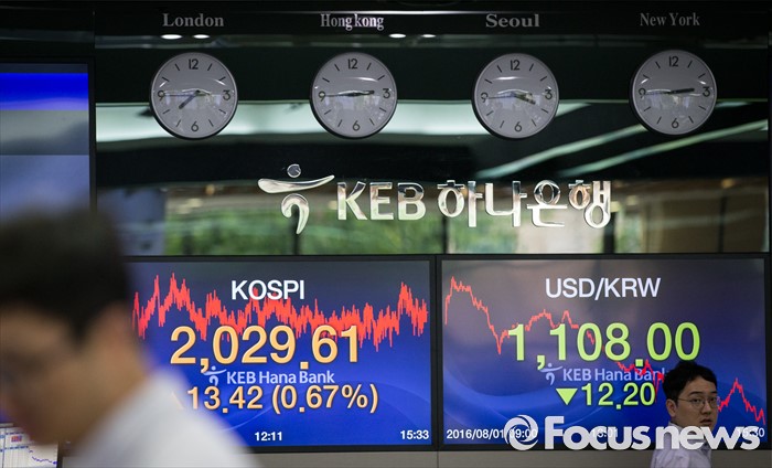 (서울=포커스뉴스) 증권·파생상품 시장, 금 시장의 정규장 매매거래 시간이 30분씩 연장된 1일 오후 서울 중구 KEB외환은행 본점 딜링룸에서 딜러들이 업무를 보고 있다. 이날 코스피는 13.42(0.67%) 오른 2029.61에 마감했으며, 원·달러 환율은 전날보다 12.2원 내린 1108.0원에 거래를 마쳤다.