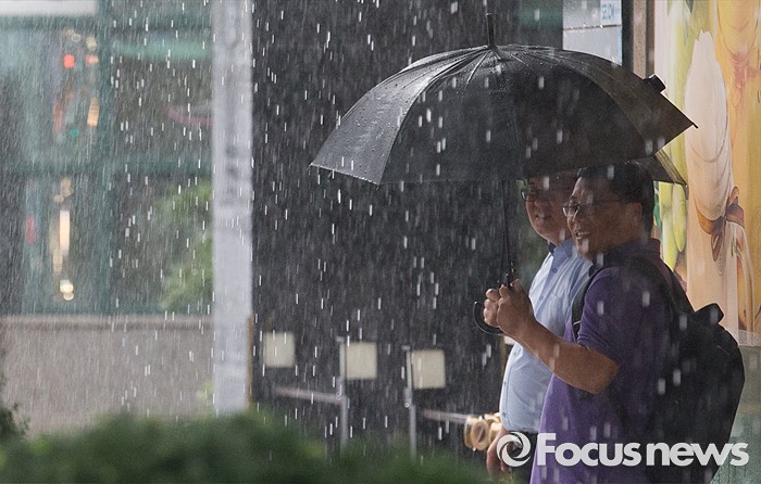 (서울=포커스뉴스) 천둥, 번개를 동반한 강한비가 내린 2일 오후 서울 서초구 교대역 주변에서 시민들이 비를 피해 멈추기를 기다리고 있다.