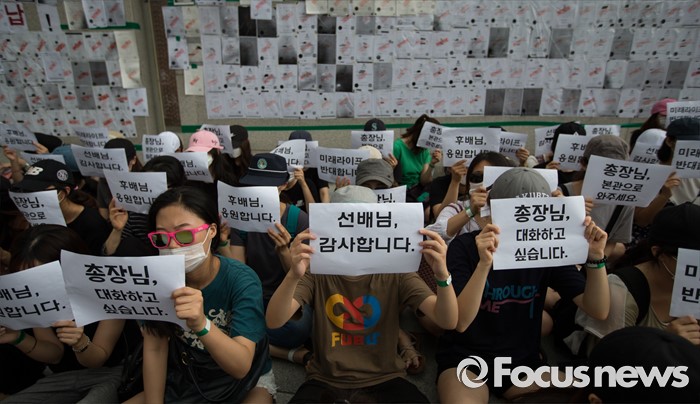 (서울=포커스뉴스) 미래라이프 대학 설립에 반대하는 이화여대 졸업생들 및 재학생들이 2일 오후 서울 서대문구 이화여자대학교 정문 앞에서 졸업장 반납 시위를 하고 있다.