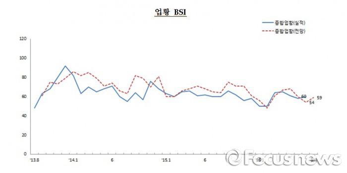이는 지난달에 비해 2포인트 오른 수치지만, 여전히 업황을 부정적으로 본 업체 수가 훨씬 많은 것을 의미한다. BSI는 100을 기준으로 이보다 높은 수치는 긍정적 전망, 낮은 수치는 부정적 전망을 뜻한다.