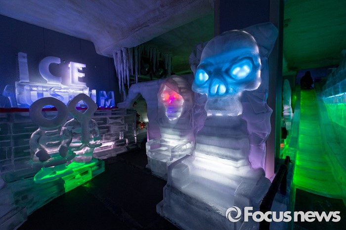 (서울=포커스뉴스) 3일 오후 서울 마포구 아이스뮤지엄에 얼음 구조물들이 전시돼 있다.