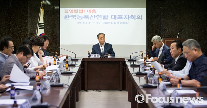 (서울=포커스뉴스) 한국농축산연합회 대표자들이 1일 오전 서울 서초구 제 2축산회관에서 김영란법 대응에 관련된 회의를 하고 있다.