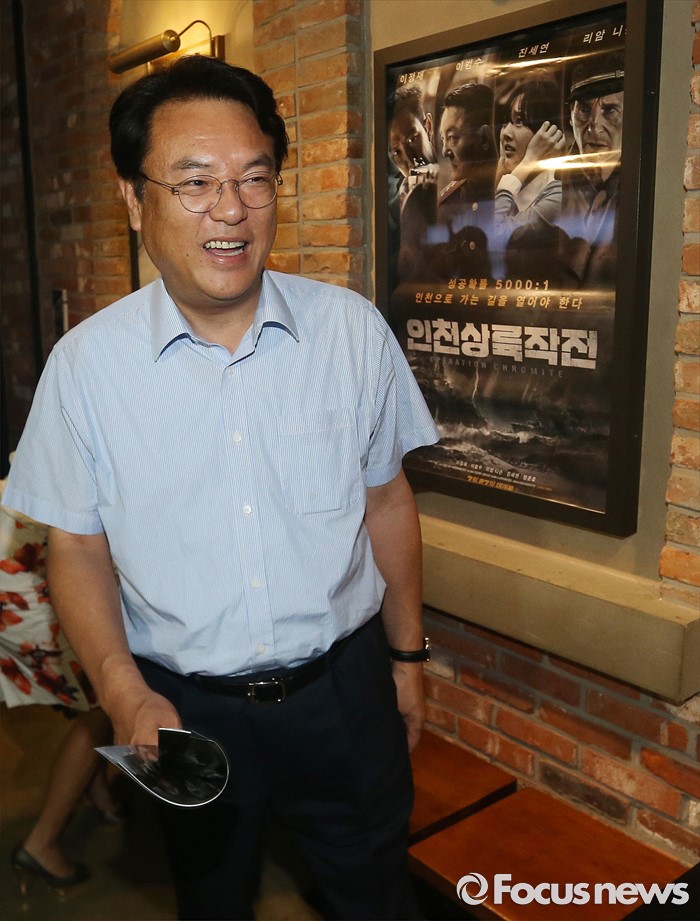 (서울=포커스뉴스) 정진석 새누리당 원내대표가 1일 오후 서울 여의도 한 영화관에서 영화 '인천상륙작전' 관람을 위해 이동하고 있다.