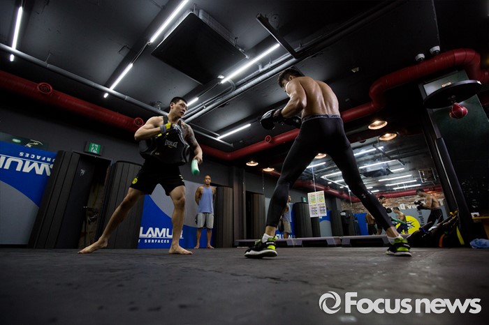 (서울=포커스뉴스) 오는 21일(한국시각) 미국 라스베이거스 T-모바일 아레나에서 개최되는 UFC-202에 출전해 러시아 출신 술탄 알리예프를 상대로 웰터급 경기가 예정된 임현규(오른쪽)가 3일 오후 서울 서대문구 TAP복싱 & 레슬링에서 훈련 하고 있다.