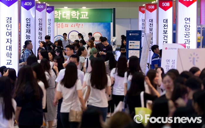 (서울=포커스뉴스) 3일 오후 서울 강남구 코엑스에서 2017학년도 수시 전문대학 입학정보 박람회를 찾은 학생들이 입학상담을 위해 이동하고 있다.