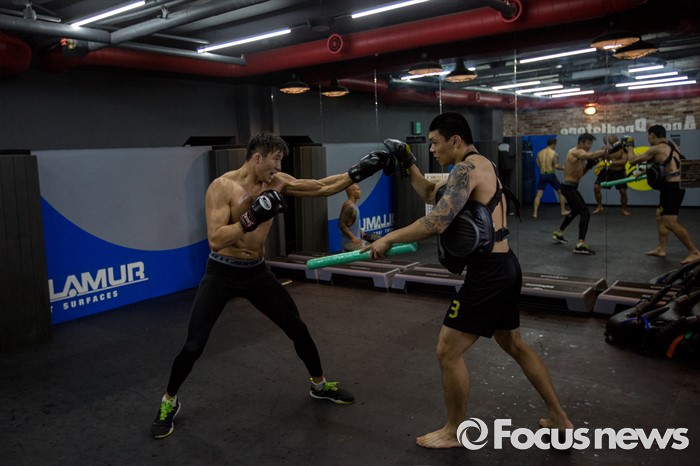 (서울=포커스뉴스) 오는 21일(한국시각) 미국 라스베이거스 T-모바일 아레나에서 개최되는 UFC-202에 출전해 러시아 출신 술탄 알리예프를 상대로 웰터급 경기가 예정된 임현규(왼쪽)가 3일 오후 서울 서대문구 TAP복싱 & 레슬링에서 훈련 하고 있다.