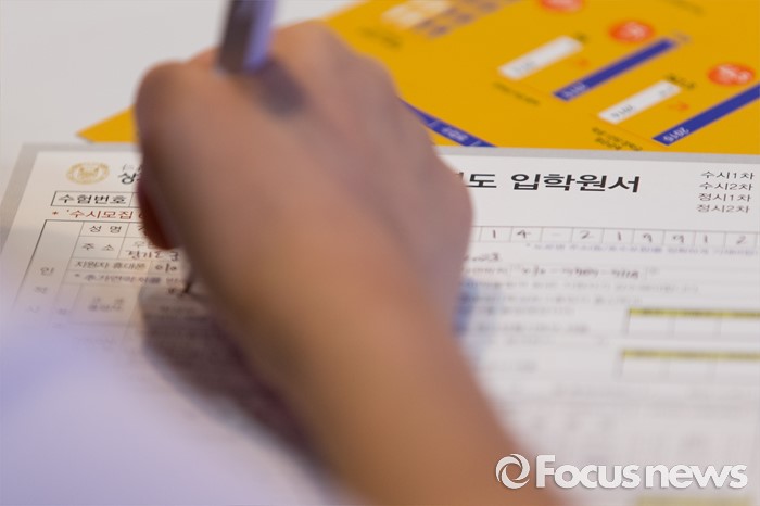 (서울=포커스뉴스) 3일 오후 서울 강남구 코엑스에서 열린 2017학년도 수시 전문대학 입학정보 박람회에서 한 학생이 입학원서를 작성하고 있다.