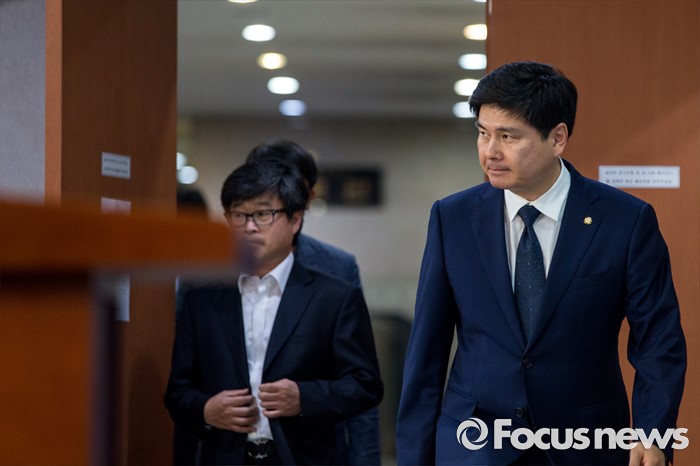 | △ 브리핑장 들어서는 지상욱 대변인 |