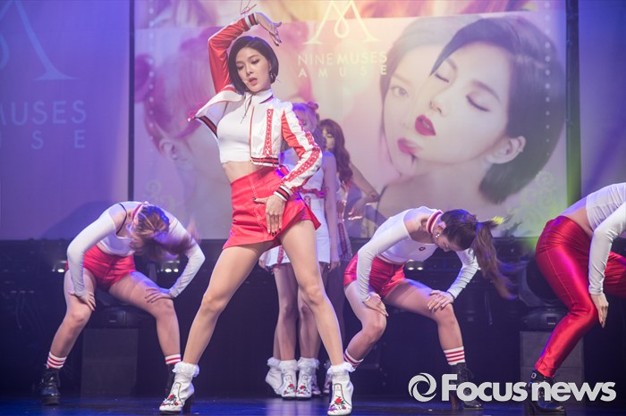 (서울=포커스뉴스) 4일 오전 서울 도봉구 플랫폼창동61에서 열린 걸그룹 나인뮤지스A의 싱글앨범 'MUSES DIARY' 발표 쇼케이스에 참석한 멤버 소진이 무대를 선보이고 있다.