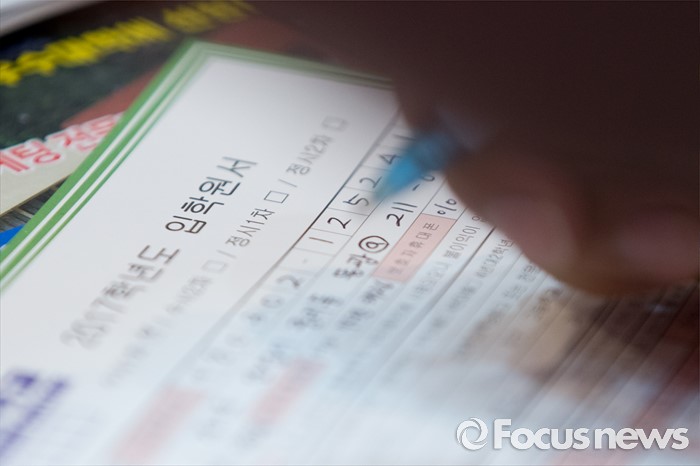 (서울=포커스뉴스) 3일 오후 서울 강남구 코엑스에서 열린 2017학년도 수시 전문대학 입학정보 박람회에서 한 학생이 입학원서를 작성하고 있다.