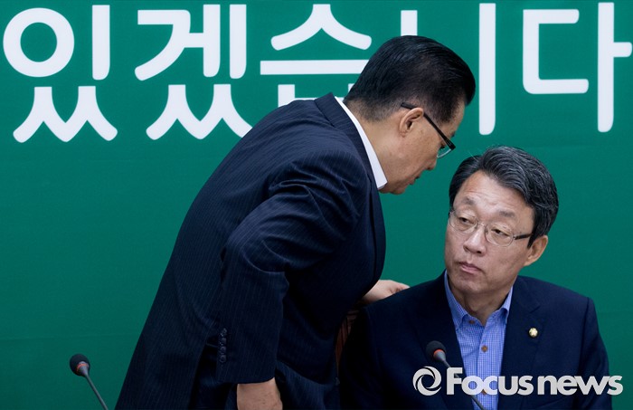 (서울=포커스뉴스) 3일 오전 서울 여의도 국회에서 열린 국민의당 비상대책위원회의에 참석한 박지원(왼쪽) 비대위원장이 회의장을 나서며 김성식 정책위의장과 대화하고 있다.
