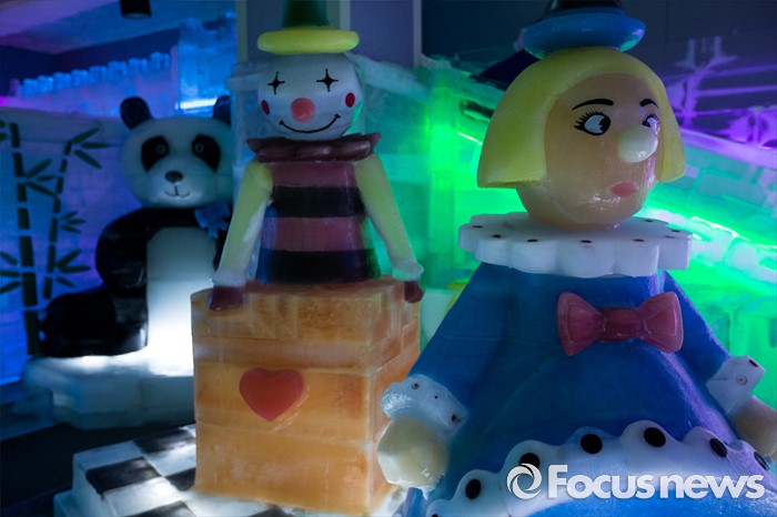 (서울=포커스뉴스) 3일 오후 서울 마포구 아이스뮤지엄에 얼음 구조물들이 전시돼 있다.