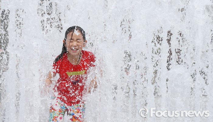 (청주=포커스뉴스) 전국 대부분 지역에 폭염특보가 내려진 1일 오후 충북 청주 오송호수공원 분수대에서 어린이들이 더위를 식히고 있다.