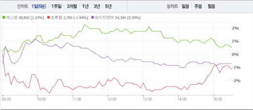이 외에도 키이스트(-3.03%), 에프엔씨엔터(-2.61%), JYP엔터(-1.87%), 큐브엔터(-1.43%) 등 다른 기획사들도 하락세를 나타냈다.