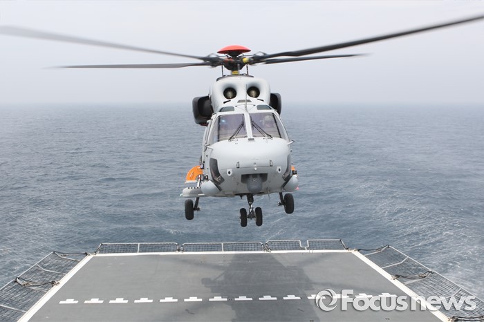 이 관계자는 "수리온이 국토부 표준증명을 받지 못했다는 것은 민간용으로 안전성이 확인되지 않았다는 의미"라며 "도심에서 소방 헬기로 사용하고 더 나아가 수출까지 하려면 특별감항인증으로는 한계가 있다. KAI가 민간 버전으로 수리온을 개조해 국토부 표준증명을 받는 수밖에 없다"고 조언했다.(서울=포커스뉴스) 29일 KAI 한국항공우주산업은 다목적헬기인 수리온을 기반으로 제작된 해병대용 상륙기동헬기의 개발을 완료했다고 밝혔으며 이 헬기는 함정과 해상에서 해병대 병력, 장비, 물자 수송을 맡아 상륙작전을 지원하게 된다. <사진제공=KAI 한국항공우주산업> 2015.12.29 포커스포토