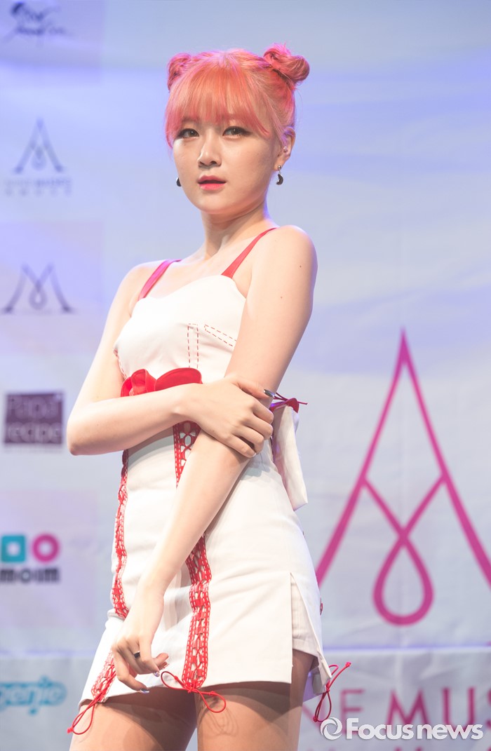 (서울=포커스뉴스) 4일 오전 서울 도봉구 플랫폼창동61에서 열린 걸그룹 나인뮤지스A의 싱글앨범 'MUSES DIARY' 발표 쇼케이스에 참석한 멤버 금조가 포토타임을 갖고 있다.