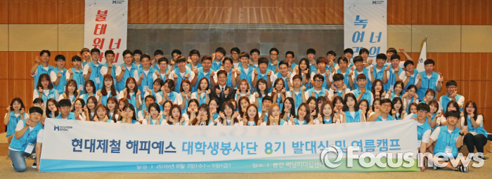 (서울=포커스뉴스) 현대제철은 경기도 용인 씨닝리더십센터에서 대학생 봉사단 '해피예스 8기'의 발대식 겸 여름캠프를 진행했다고 4일 밝혔다.