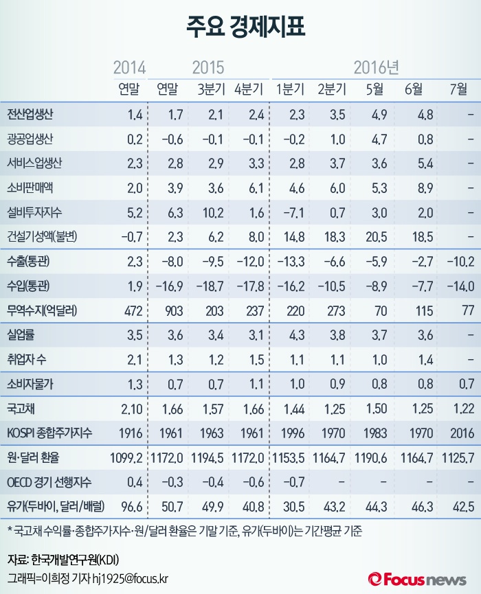 (서울=포커스뉴스) 4일 한국개발연구원(KDI)이 공개한 ‘2016년 3분기 전문가 경제전망 설문조사(8월 경제동향)에 따르면 올해 한국경제 성장은 2.6%로 하반기 회복세가 제한적인 범위에 머물 수 있다고 입을 모았다.