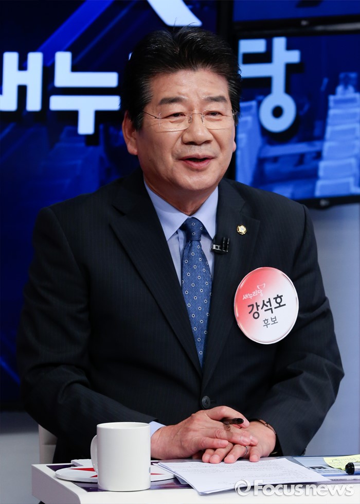 (서울=포커스뉴스) 4일 서울 중구 TV조선 스튜디오에서 열린 새누리당 최고위원 후보자 TV토론회에 참석한 강석호 의원이 발언하고 있다.