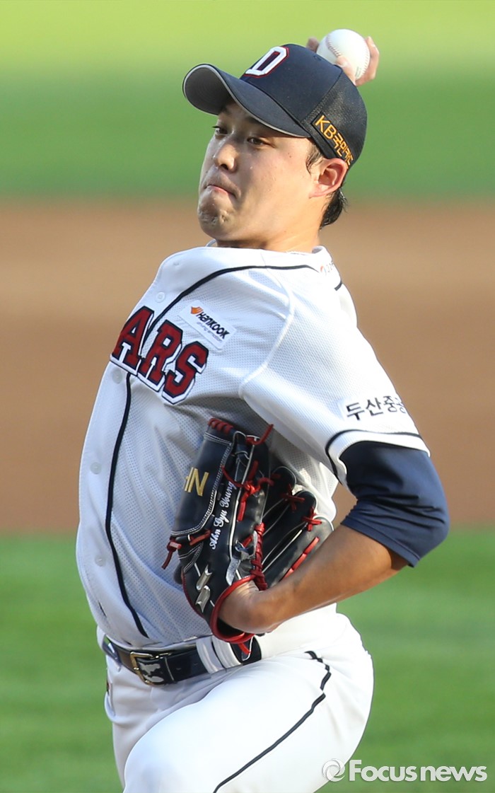 (서울=포커스뉴스) 4일 서울 잠실구장에서 열린 2016 프로야구 LG-두산 경기에서 1회초 두산 선발투수 안규영이 투구하고 있다