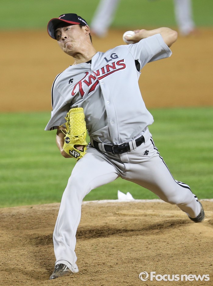 (서울=포커스뉴스) 4일 서울 잠실구장에서 열린 2016 프로야구 LG-두산 경기에서 두산을 연장 12회에 물리친 LG 승리 투수 윤지웅이 힘차게 투구하고 있다.