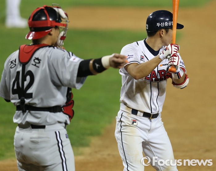 (서울=포커스뉴스) 4일 서울 잠실구장에서 열린 2016 프로야구 LG-두산 경기 연장 12회말 2사 2루에서 두산 허경민을 고의사구로 걸르고 있다.